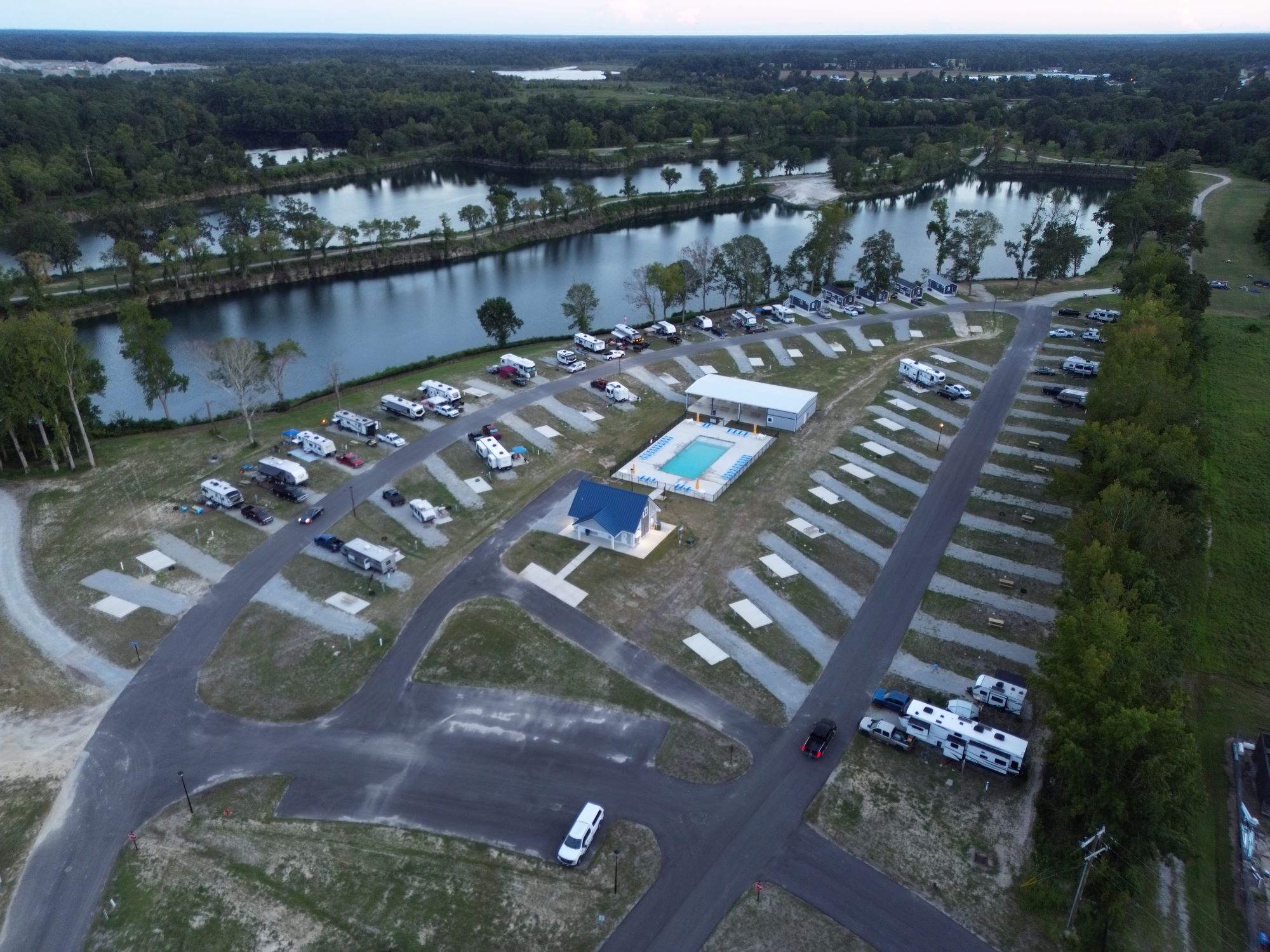 Discover the perfect RV escape at The Lakes RV Park & Cabin Resort, where comfort, convenience, and natural beauty come together. Our spacious RV sites include pull-through, back-in, and premium lakeside options, all designed to accommodate everything from compact campers to the largest big rigs. With level pads and wide, paved roads, navigating and setting up is quick and easy, so you can spend more time enjoying your getaway.