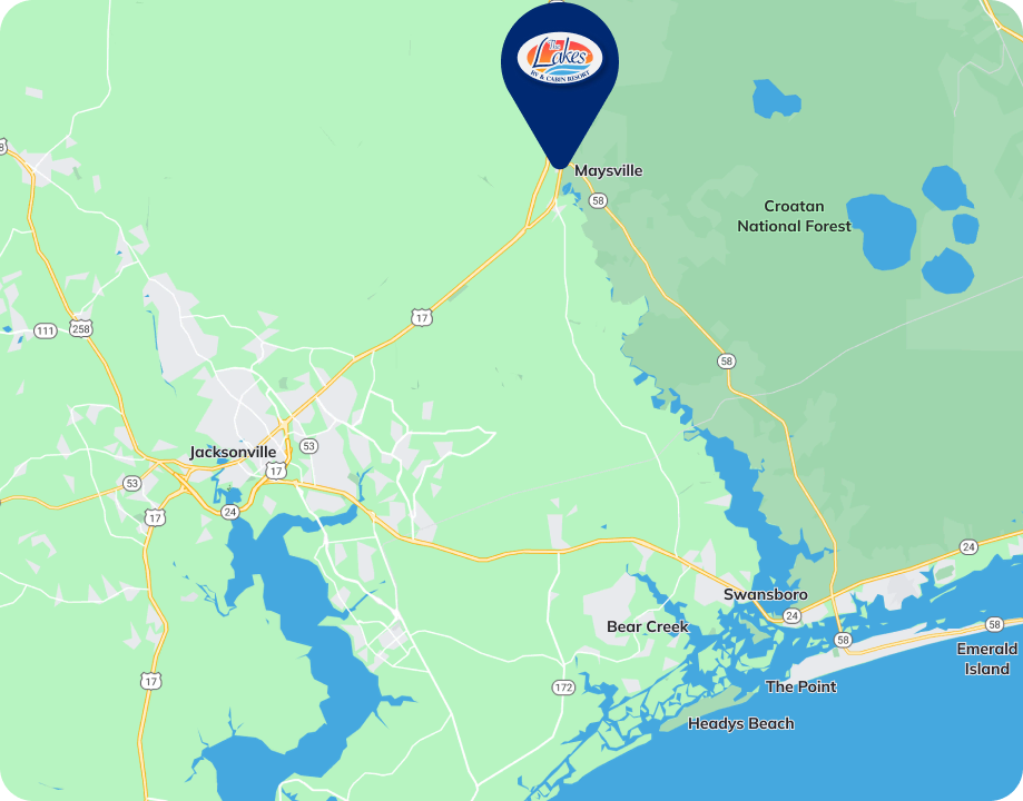 The Lakes RV & Cabin Resort is perfectly situated in Eastern North Carolina, just a short drive from some of the region’s most popular beaches, including the pristine shores of Emerald Isle. Nature enthusiasts will love exploring nearby Hammocks Beach State Park, known for its untouched barrier island beaches, kayaking trails, and scenic ferry rides. With so many coastal treasures close by, our location is ideal for both relaxation and adventure.